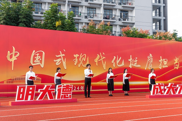 升旗仪式后,全体大合唱《歌唱祖国》,代表全体文理人对祖国母亲的深情祝福和郑重承诺。文理青年将在青春的赛道上提速奔跑,奋力书写为中国式现代化挺膺担当的青春篇章。