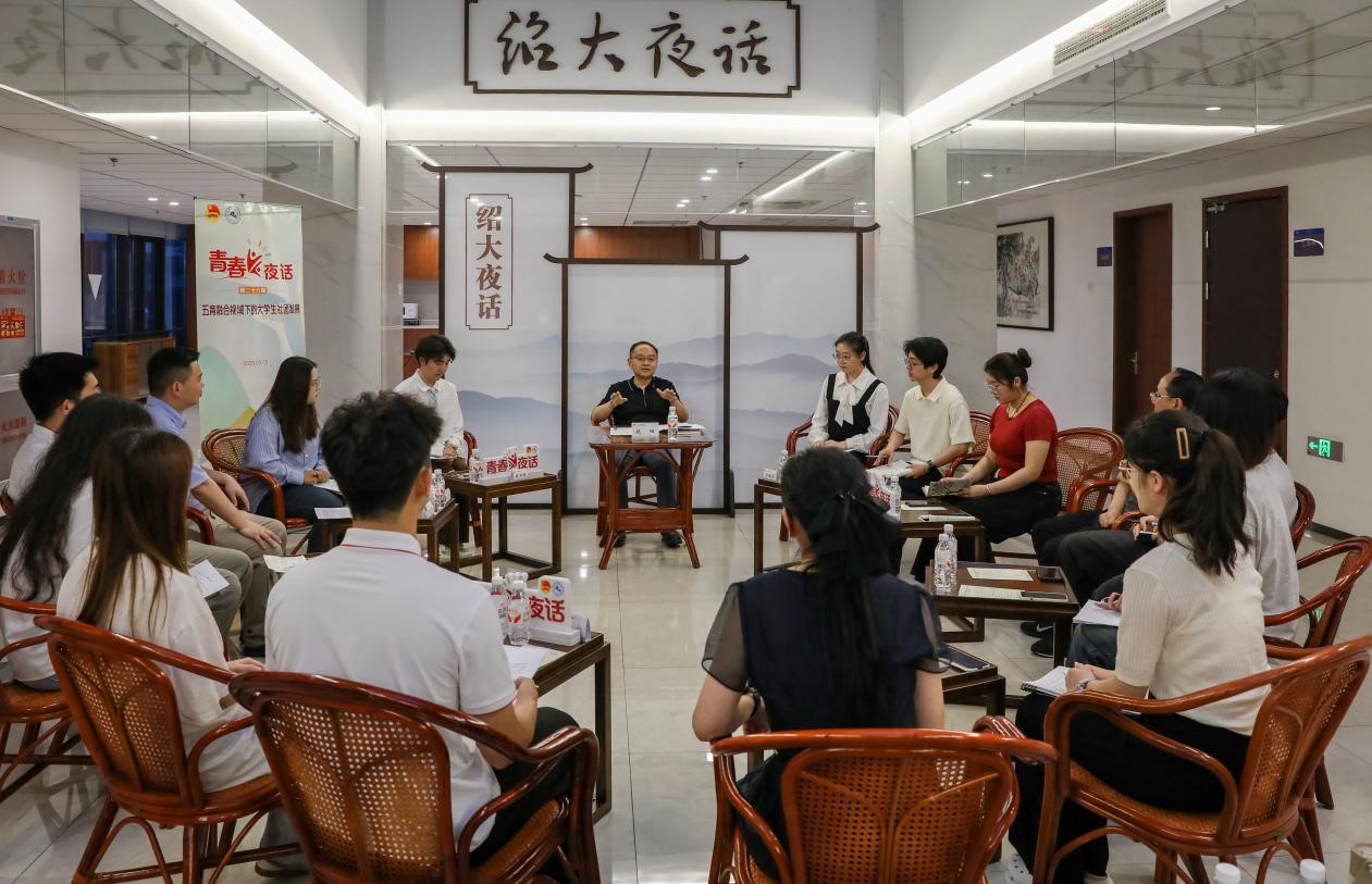 5月15日晚,“绍大夜话”第三十四期之“青春夜话”第二十六期举行。校长赵阳与社团负责人代表共同探谈五育融合视域下大学生社团的创新与成长。学校办公室、学工部、研工部、团委相关部门负责人及多位经验丰富的社团指导老师代表参加活动。