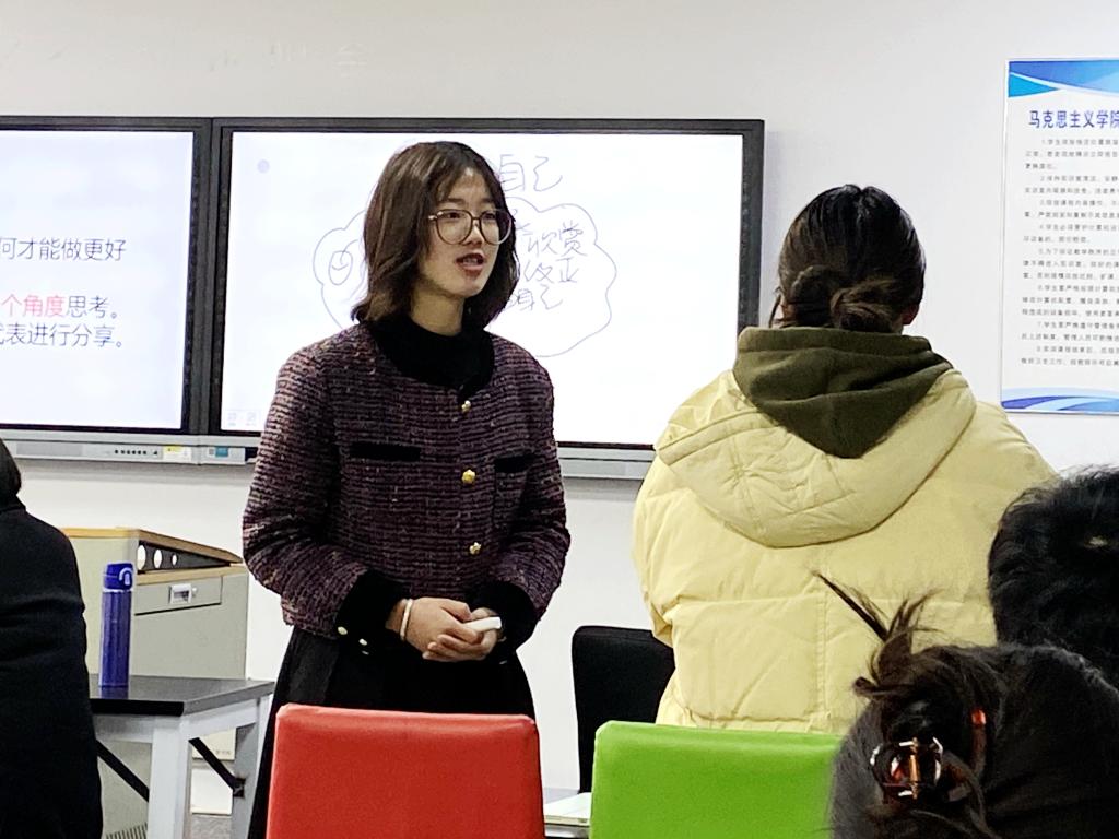 在俞婉君教授《中学思想政治课程教学技能与微格训练2》课堂上,两名大学四年级的思政专业学生,带着教育实习及竞赛的经验上了一堂生动活泼的示范课。王子莹同学分享了自己的经验体会:“以《青春的情绪》这一课为例,我们应致力于帮助学生深入了解并学会把握自己的情绪,以良好的情绪推动具体实践,在未来投身于中国特色社会主义的建设之中。”